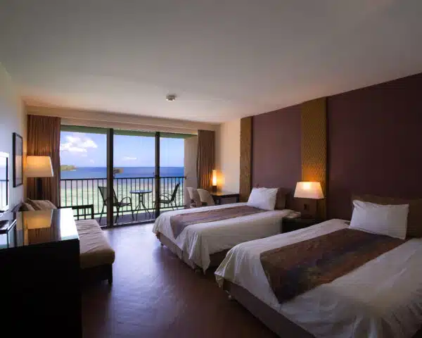 Infinity Ocean Front room provides panoramic ocean front view of Tumon bay.